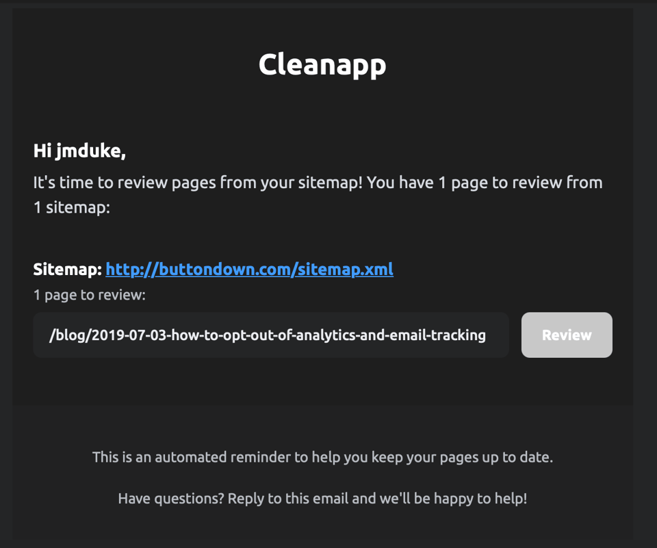 I have had my account active for six days as of writing this, and therefore have received six marketing site pages every morning. Four of those six pages are ones that I have not looked at in over a year, and I immediately found small issues or improvements to all of them. It's a very small little ritual, but one that feels particularly high signal to noise relative to other ways I could throw spaghetti at the wall. (Thanks, Rasul!)